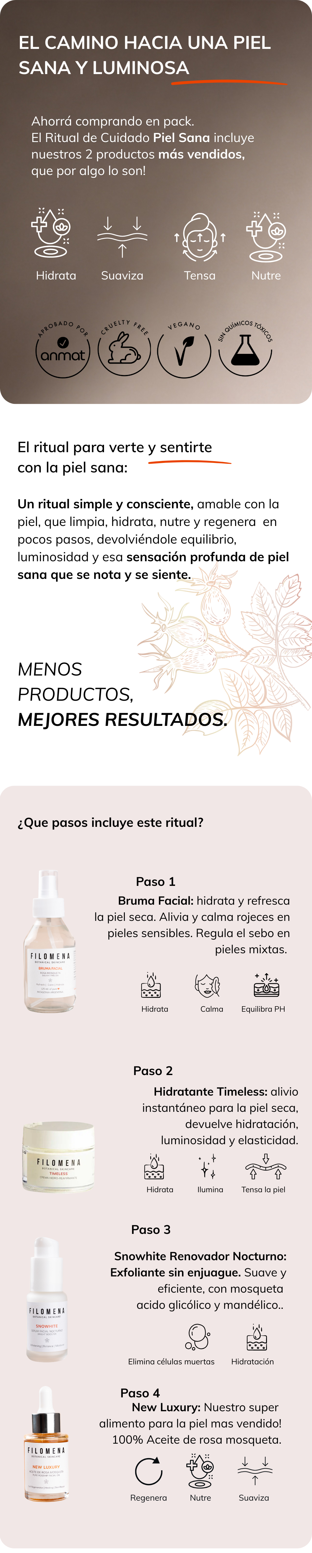 Bruma Facial: Whater, Aloe Barbadenis Leaf Extract, Salvia Officinalis Oil, Melisa Officinalis Leaf Oil, Extracto de Kernel de Avena Sativa, Officinalis Flower Extract, Rosehip Oil, Glycerin, Aqua (and) Sodium Benzoate (and) Potassium Sorbate, Xanthan Gum.